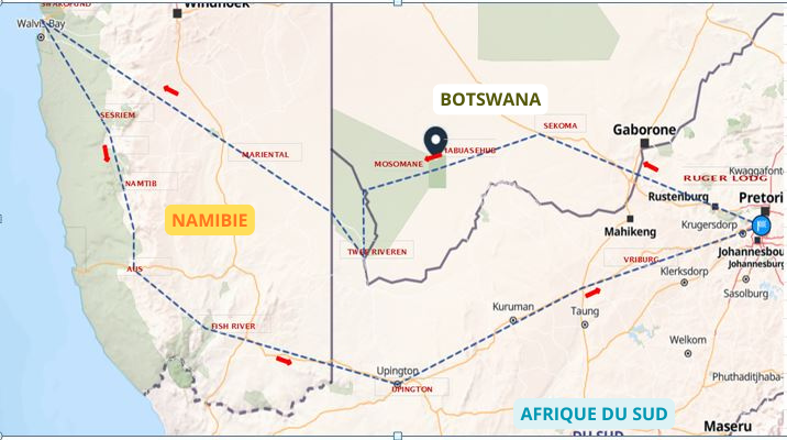 📍19 Novembre : Rustenburg, (Afrique du Sud) →Sekoma 1nuit (Botswana) 399 km en 6h avec les arrêts notamment au poste Frontière. Via N4 et A2. .