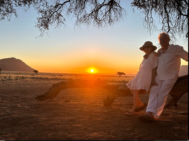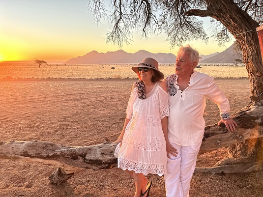 Ils désiraient de découvrir la Namibie, mais aussi de fêter nos vingt ans de mariage… au beau milieu du désert namibien, rien que ça. La cérémonie, entièrement organisée par leurs soins, a été un moment aussi émouvant qu’inoubliable. Une idée audacieuse, surtout quand on fête ça à 69 et 74 ans, avec toujours autant d’envie, mais parfois un genou un peu moins coopératif que l’autre.
