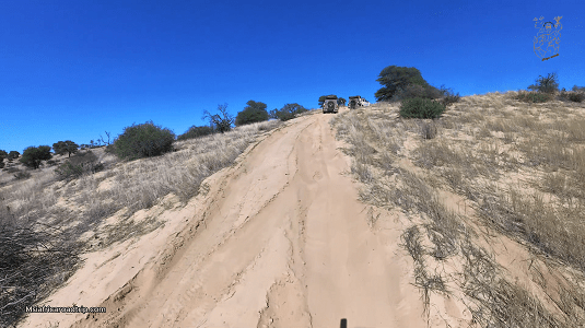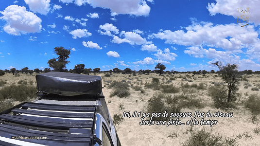 À l’entrée du trail, il est 12h. On passe d’un état semi-sauvage à un état franchement sauvage. Ici, ce sont de vraies pistes de sable, sans concession.
