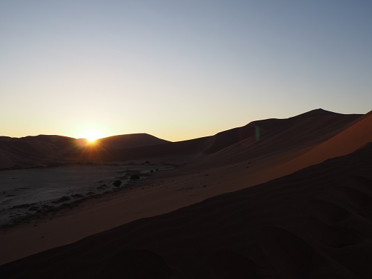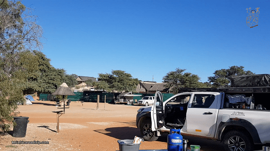 Nous reprenons la route, cette fois par la C19, cap sur Sesriem. Nous arrivons à 17h pour effectuer les formalités, heureux d’être installés avant la nuit, avec déjà en tête l’excitation du lendemain matin. Cette année, nous avons réservé un emplacement de camping à l’intérieur du parc. Camping onéreux et pas terrible ! Le seul avantage non négligeable : les personnes logeant à l’intérieur bénéficient d’un privilège, l’accès aux dunes une heure avant l’ouverture officielle du parc. Lien du parc : NWR Payé/jour/pers: 34€