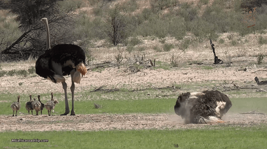 Les parents finissent par déclarer forfait, abandonnant la course (et les autruchons) pour s’enfoncer dans le bush.