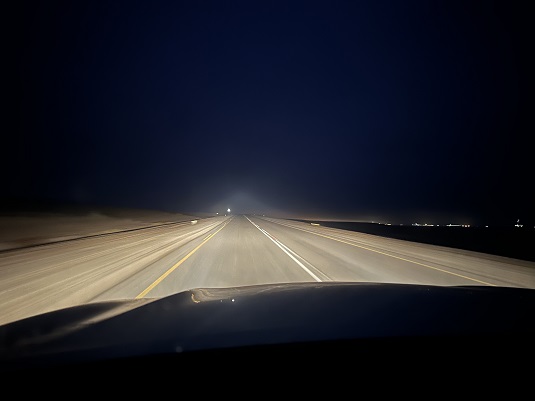 Réveil avant l’aube. Il fait encore nuit lorsque nous quittons le campsite. L’air est frais, presque mordant, les phares éclairant le ruban d’asphalte qui file vers les dunes mythiques du Namib.