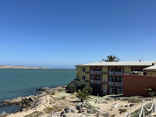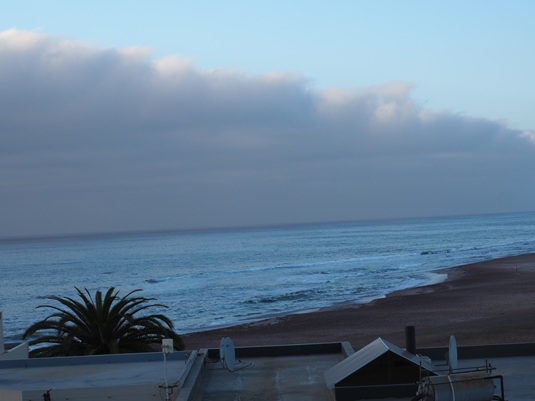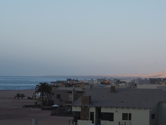 La vue sur l’océan depuis notre appartement à Swakopmund.