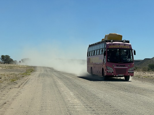 📍24 Novembre : Mata-Mata →Bagatelle : 319 km : 3h51. Puis Bagatelle →Swakopmund : 621 km : 6h27. 940 km en 10h27 dans la journée.