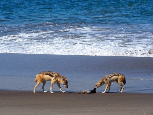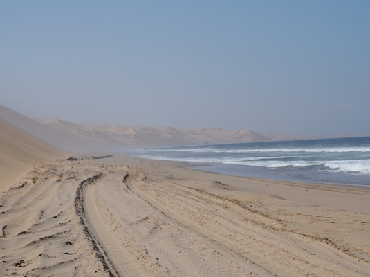 Et apparemment, l’Atlantique namibien suit le même calendrier sur toute sa côte… Swakopmund nous avait déjà fait le coup quelques jours plus tôt ! 😉