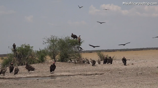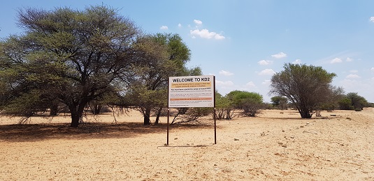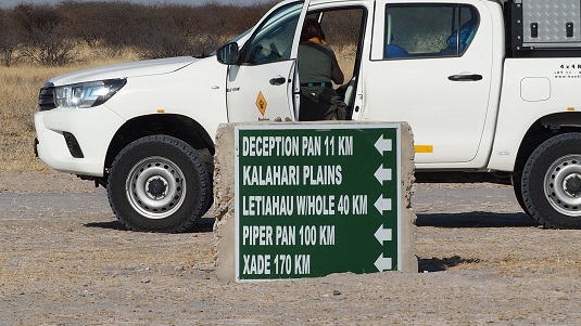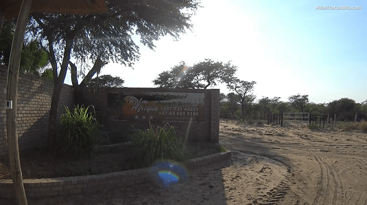 - À une vingtaine de kilomètres au nord de Twee Rivieren, côté Botswana, sur l’axe principal longeant la Nossob River.
