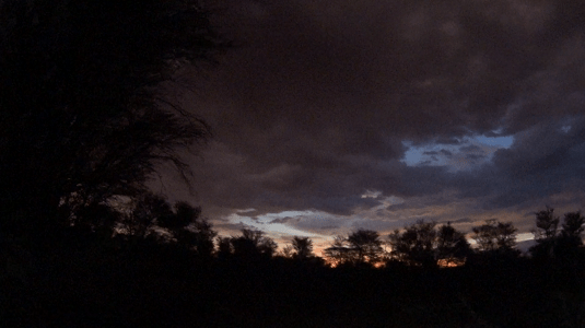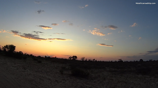 Heureusement, la tempête se calme juste au coucher du soleil, offrant un spectacle aussi apaisant qu’un chant de grillon, mais version Kalahari. Et nous, on se dit qu’on n’aura jamais autant respecté un coucher de soleil.