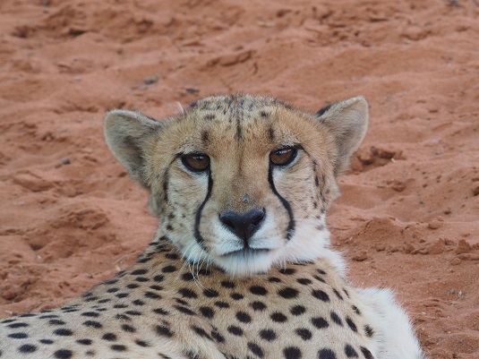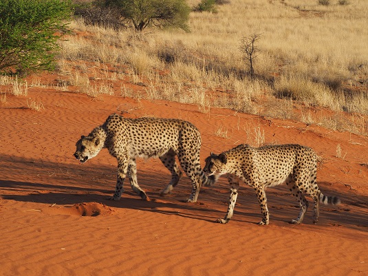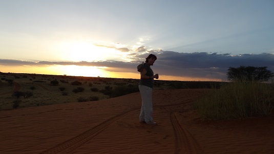 Bagatelle Game Ranch est un établissement magnifique au milieu des dunes rouges du Kalahari. Nous sommes restés deux jours à nous prélasser : massage, piscine, restaurant. Activités : repas des Guépards, apéritif en haut d’une dune au coucher de soleil. Et le lendemain matin, nous sommes partis en excursion avec les San (Bushmen).
