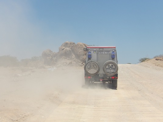 Au début une route goudronnée : de Etosha (sortie Andersson Gate ) jusqu’à Khorixas. Ensuite de la piste jusqu’à « Madisa » notre Hébergement 281 km (3h30), aucunes difficultés. Prendre : C38/OutjoC39/ KhorixasC35/ D2612