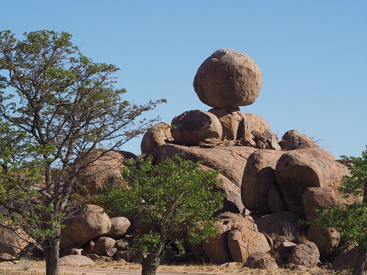 Une très belle route goudronnée en suivant la B1 jusqu’au Parc National d’Etosha. 685 km (6h30)