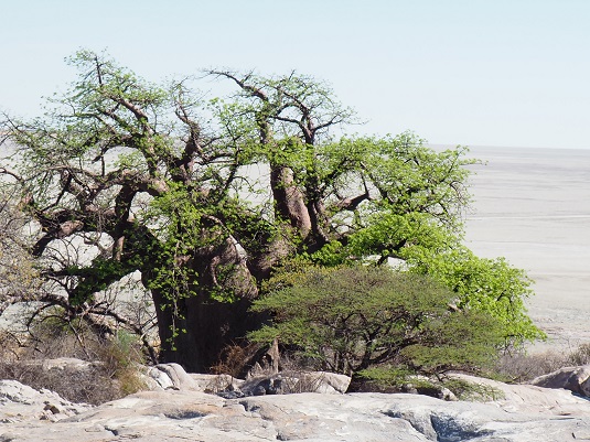Une île de granit sec au milieu d'un désert de salines, à Khubu Island, d'immenses Baobabs plus que centenaire pour certains, peuplent cette l'île.