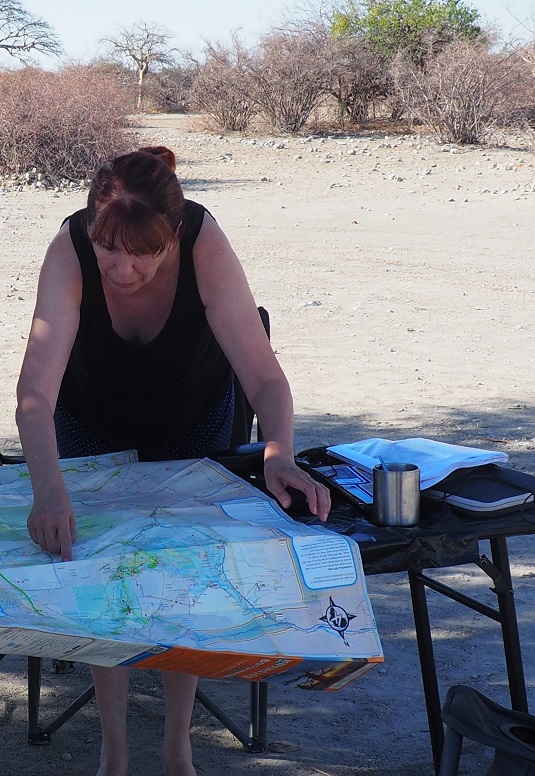 GRAND DANGER AUX ABORDS DES PANS !!! Le danger est réel la surface peut vous semblez dure, malheureusement, il s’agit d’une fine croûte de boue argileuse, laquelle est gluante et collante en dessous. Votre véhicule risque de s’enliser et s’enfoncer irrémédiablement dans la boue collante, avec une perte totale du véhicule. Renseignez-vous bien avant de vous engager sur les pistes. Contactez : « Gaing O Community Trust » afin de connaître l’état des pistes, et ils vous indiqueront les pistes à éviter. D’autre part, peu importe la saison, il est essentiel d’avoir une carte : genre Tracks4Africa ou un GPS. Cependant, vous n’aurez pas toutes les pistes avec la carte ou le GPS, néanmoins, vous arriverez à vous localiser.
