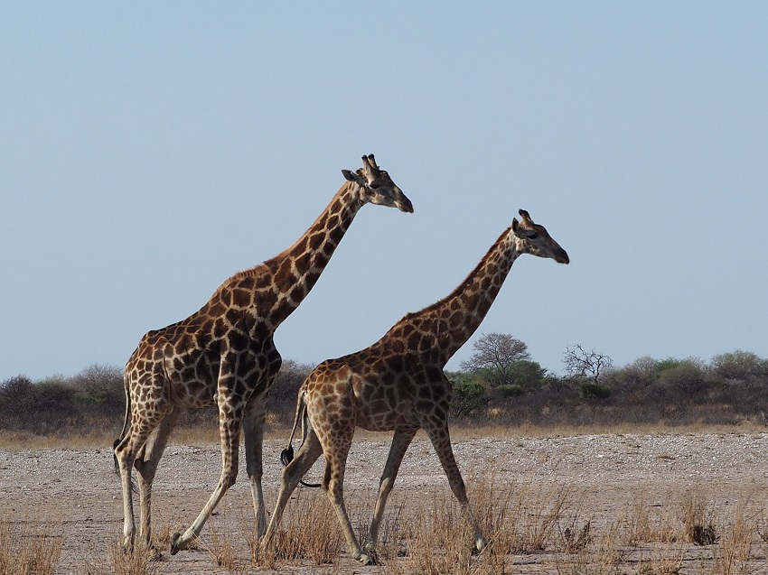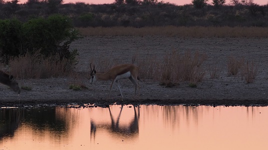 Quelques springboks et koudous s’abreuvaient au point d’eau. C’est un plus tard dans la matinée, que des girafes ont surgi de partout.