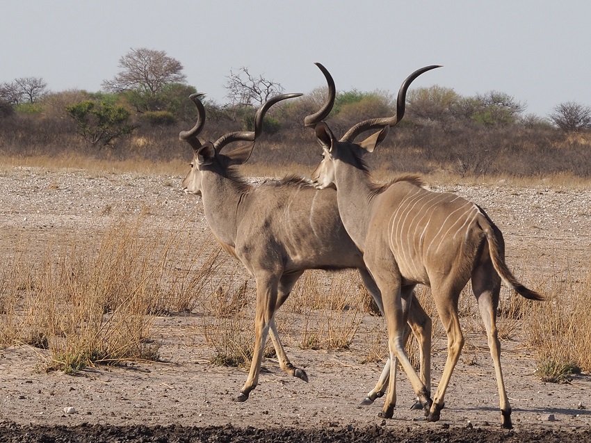 Dans l'après-midi, sur le pan de Motopi des koudous. Avec les grandes cornes se sont les mâles.