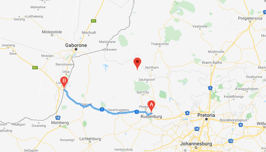 📍Le 09/11/19 : Rustenburg (Afrique du Sud) → Pioneer Gate ( frontière Botswana) 184 km environ 2h14 :