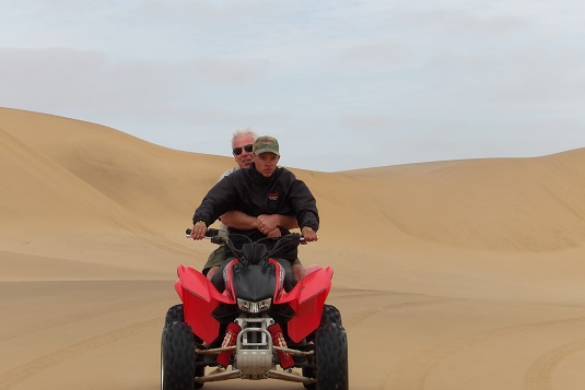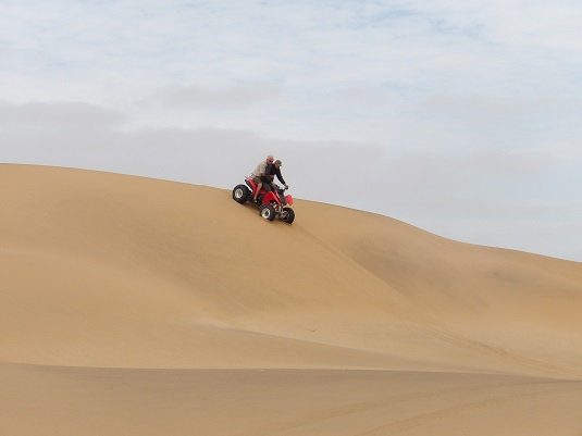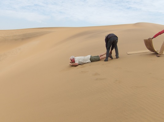Avant de nous diriger en direction du plus vieux désert du monde (Sossusvlei), nous nous étions arrêtés à la dune n°7. JP voulait faire de la luge sur le sable. Pour ma part, j’ai évité cette activité (sacré sacrum) et oui « courageuse mais pas téméraire ».