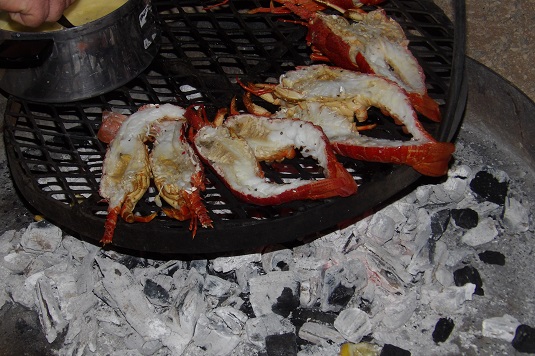 Sur la photo ci-dessous : notre camping non loin de la porte d’entrée de Sossusvlei. Le soir de notre arrivée à Sesriem, JP a préparé nos petites langoustes grillées au feu de bois, accompagnées d’une sauce au beurre citronné. Quel délice ! Entre JP et la cuisine c’est une longue histoire d’amour. Sans oublier, une bonne bouteille de vin sud-africain (un Chenin blanc) pour accompagner ce dîner mémorable en plein milieu du désert namibien.